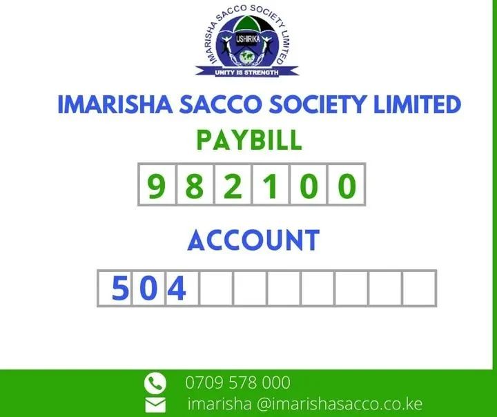 Imarisha Sacco Paybill Number 982100, How to Deposit